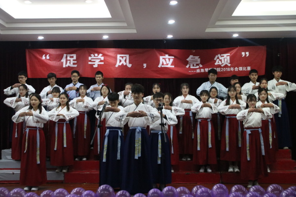 本次比赛内容分为合唱与朗诵两种形式,由17、18级300多名学生以班为单位参赛,参赛作品有歌曲《相信我们会创造奇迹》《强国一代有我在》,诗朗诵《以青春的名义宣誓》《少年中国说》等近30首经典合颂曲目。其中,安管1701班同学身着民国学生服装给大家带来的歌曲串烧《国家》《精忠报国》仿佛一下子把大家带到了民国时期的峥嵘岁月,让人心潮澎湃。管科1801带来的《少年中国说》朗诵掷地有声,成功将现场的气氛引向高潮。舞台上同学们以嘹亮的歌声、高亢的诵读声展示了应急人的热情风采与朝气。此外,本次比赛还设有中场歌曲连唱环节,生动的表演,动人的歌声,缓解了比赛紧张的气氛,让广大师生乐在其中。最终,经过激烈的角逐,安管1701班凭借合唱《仰望星空》和朗诵《致最好的我们》荣获一等奖;管理1702班和安管1702班获得二等奖;事管1702班、管理1701班、事管1804班获得三等奖。