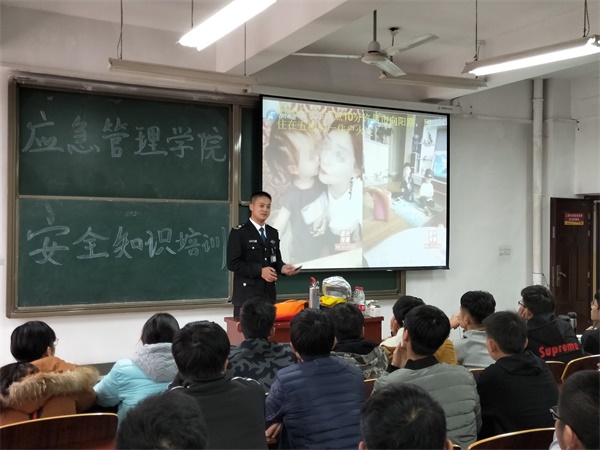 为普及消防安全知识,提高学生的安全防范意识以及自我保护能力,创建平安校园,11月20日下午,我院在文综楼407举办了消防安全知识培训讲座。本次讲座特邀河南省消防协会宣传教官李银杰担任主讲人,我院18级全体新生参加此次培训。