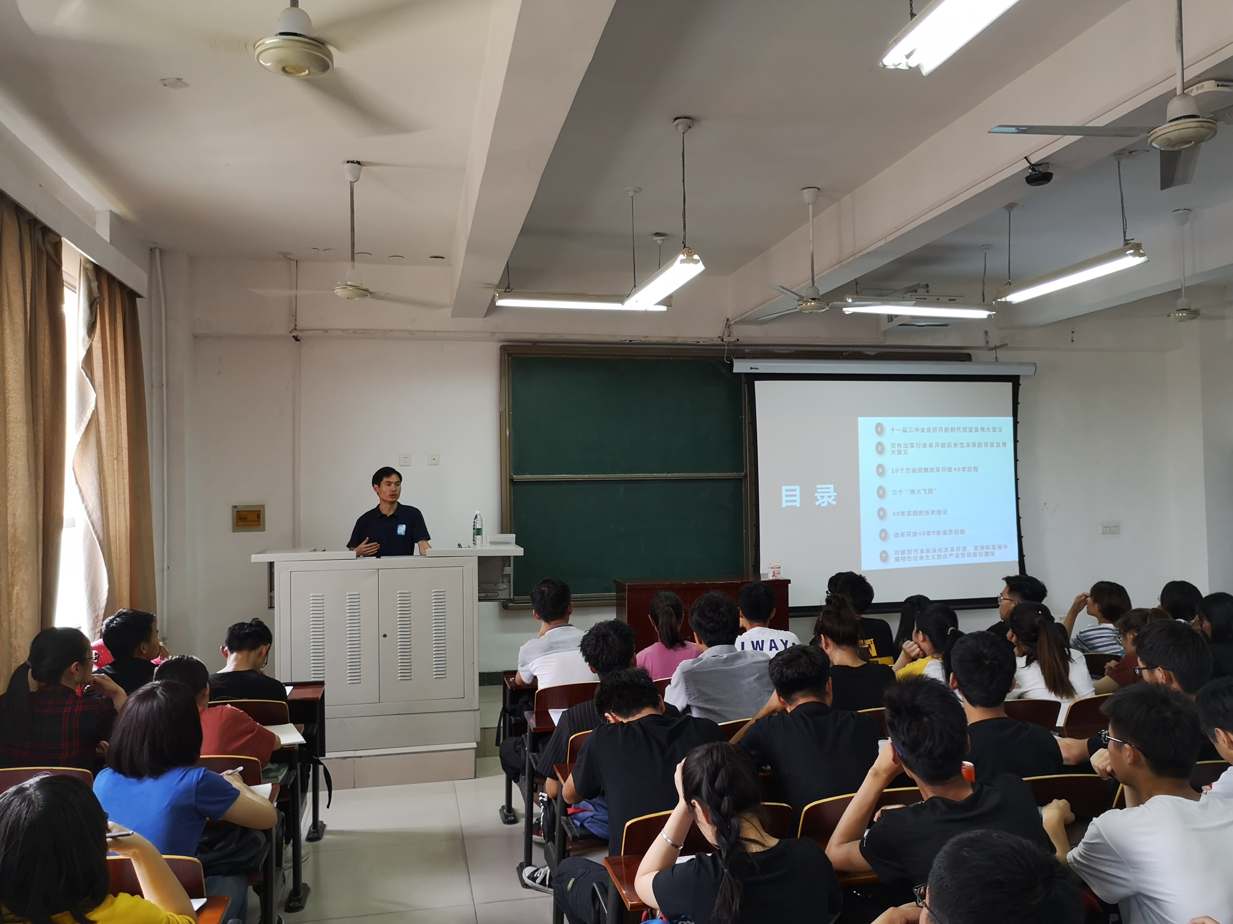 陈昊书记首先从回顾历史、总结经验、动员全党全国各族人民继续奋斗三个方面阐述了召开庆祝改革开放40周年大会的目的意义。从十一届三中全会召开的时代背景及伟大意义、党作出实行改革开放历史性决策的背景及伟大意义、10个方面回顾改革开放40年历程、三个“伟大飞跃”、40年实践的历史结论、改革开放40年9条宝贵经验和对新时代全面深化改革开放、坚持和发展中国特色社会主义的庄严宣售和殷切期望这七个方面具体深入的论述了大会主要内容和精神。同时,他结合自身实际,用朴素生动的语言讲述了自己的故事、身边的故事,生动地展现出了改革开放给我国经济、社会、民生等方面的巨大转变,传递出了时代正能量。最后,陈昊书记向广大同学提出了希望,他希望广大青年学生可以承担起自己的历史使命,奋发图强,将来接过时代的接力棒,将改革开放的时代精神继续传递下去,为实现中华民族的伟大复兴和国家强盛贡献力量。