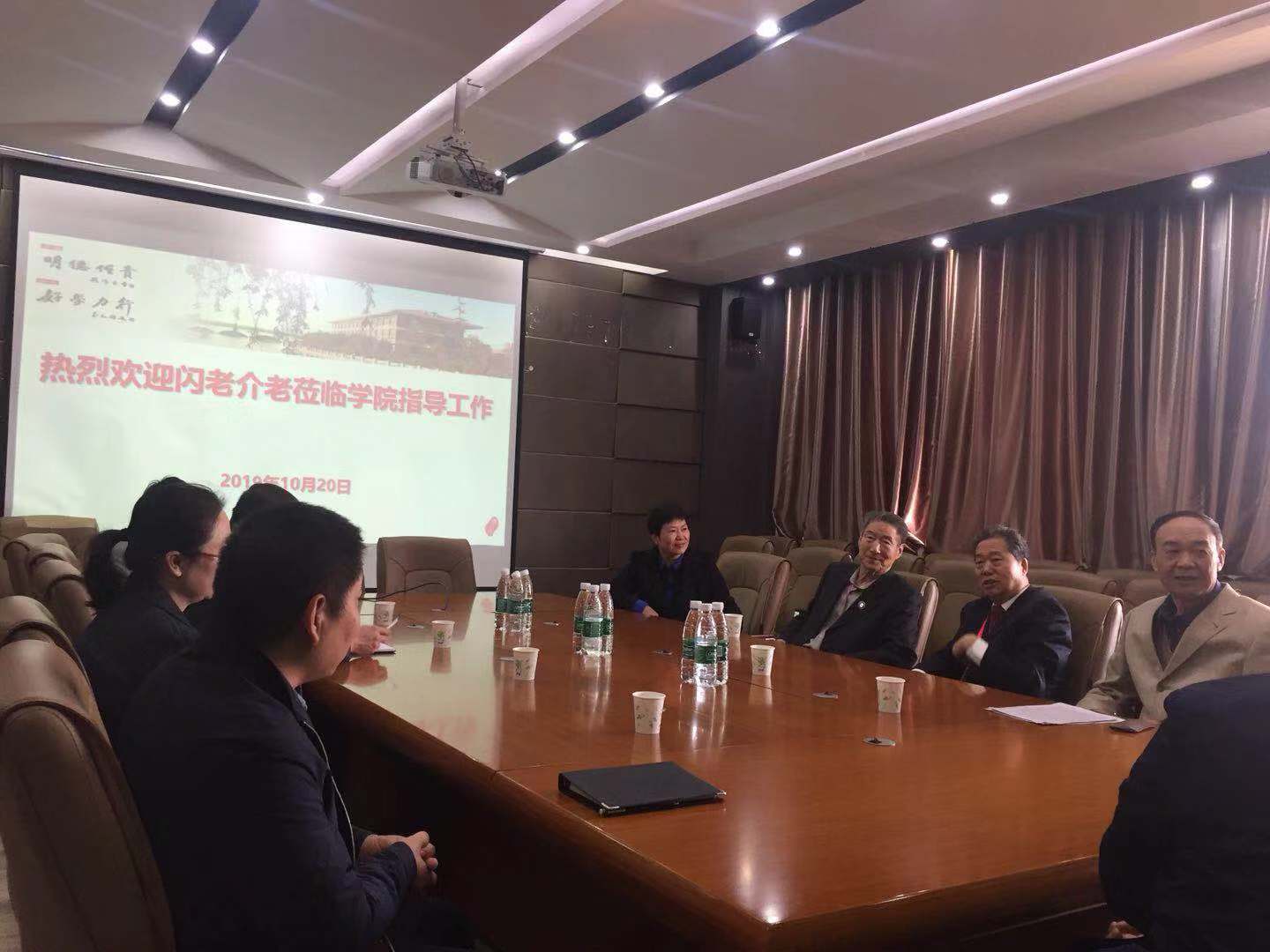 10月20日上午,我院名誉院长闪淳昌、介新二人莅临我院,就学院学科建设、专业发展方向、科研工作等方面进行详细指导,并与学院部分领导和教师展开座谈。校档案馆馆长杨艳玲、学院副院长吴晓涛、张小兵代表学院欢迎接待。