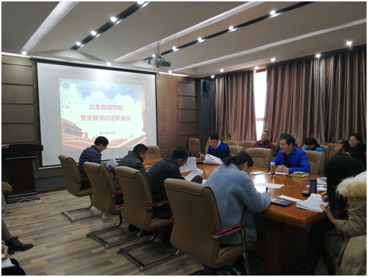 为深入贯彻学习习近平新时代中国特色社会主义思想和党的十九大精神,深入领会党的建设各项工作会议精神,12月17日,我院于文综楼518室召开党支部书记述职大会。会议由院党委书记陈昊主持,副院长吴晓涛、各党支部书记及全体党员参加会议。