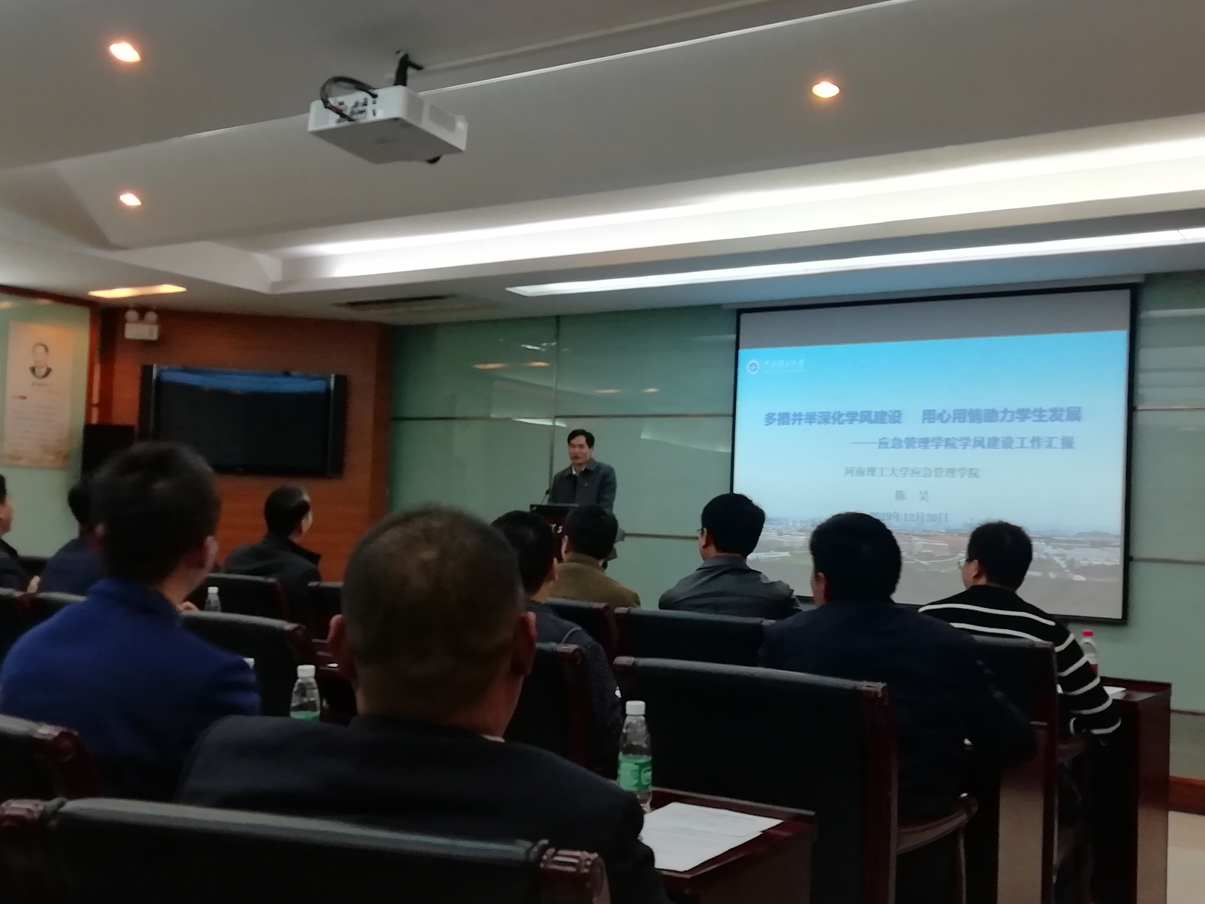 12月20日下午,我校2019“学风建设深化年”基层学院学分建设汇报展示会在明德楼一楼会议室召开。校党委副书记安士伟出席,学工部(处)、校团委、教务处等相关单位负责同志参加并担任评委。21个学院党委负责人先后发言,经过激烈角逐,我院党委书记陈昊脱颖而出,荣获第一名。