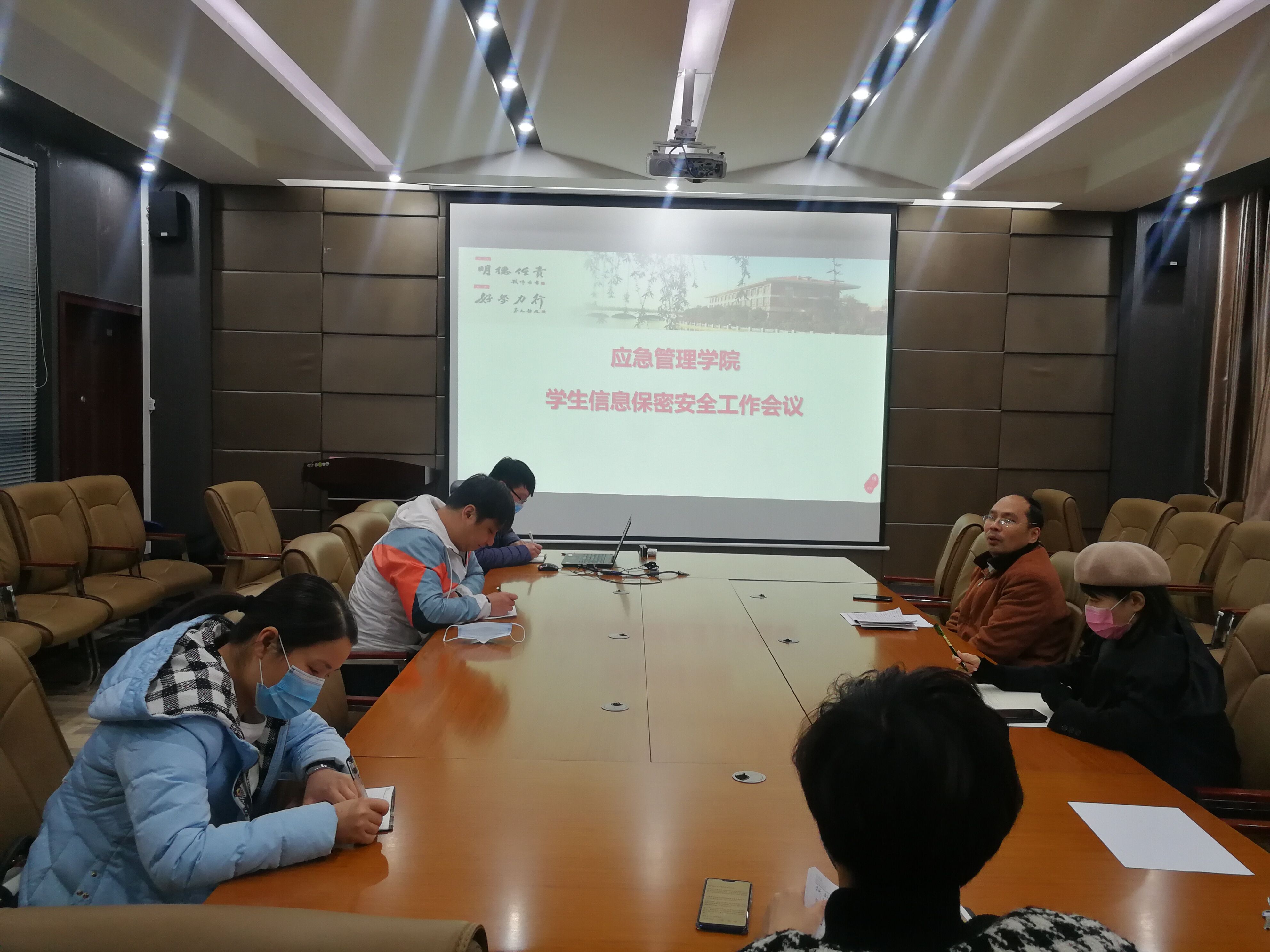 此次会议,传达了我院学生信息保密安全工作精神,普及了信息安全及保密方面法律法规知识,进一步强化了我院学工队伍保密工作意识,为加强我院学生信息保密安全工作奠定了坚实基础。
