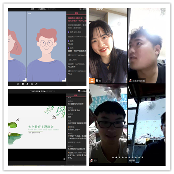 为增强毕业生的安全防范意识,提高同学们的安全防范能力,确保疫情期间毕业生的人身安全,5月20日,应急管理学院组织各毕业班分别开展了以“防患于未然,安全记心间”为主题的线上班会,各班利用QQ群直播、群课堂、腾讯会议等形式在线上开展会议。