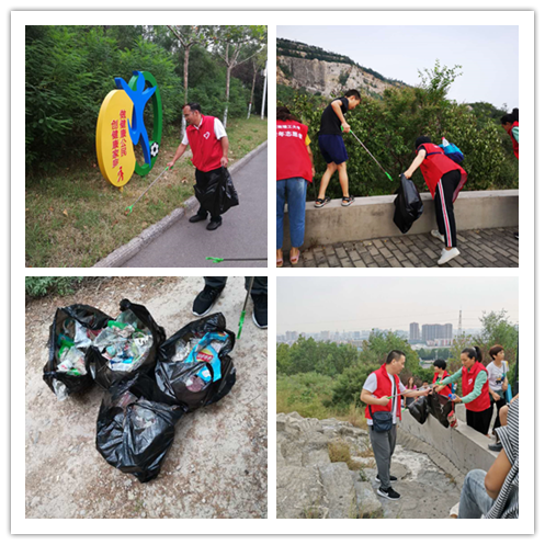 志愿服务活动中,“以身作则,身正为范”是对我院教职工志愿者们最真实生动的评价。缝山针脚下,教工志愿者们发扬不怕脏,不怕累的精神,帮助清理路边及绿地中的塑料袋、废纸屑、碎砖块等杂物,学院领导全程参与,躬行实践,共同完成志愿服务活动。虽然天气燥热,但大家却精神抖擞,干劲十足,一手提着装垃圾的口袋,一手拿着铗子,在缝山针的山道上,忙碌的拾着垃圾,装满一袋就又换上新的袋子继续工作。下山时,大家一路收集垃圾送往山下。期间,志愿者们积极向行人宣传环保知识,分发环保资料,引导周边居民培育和践行社会主义核心价值观,努力发挥居民群众在创建全国文明城市工作的主体作用。