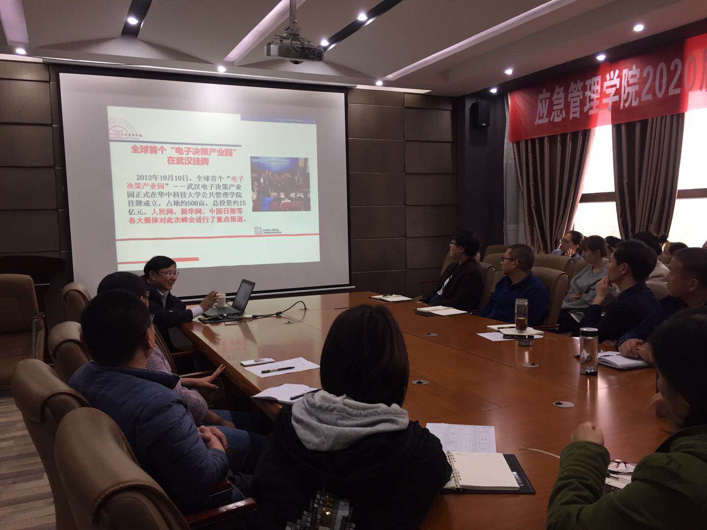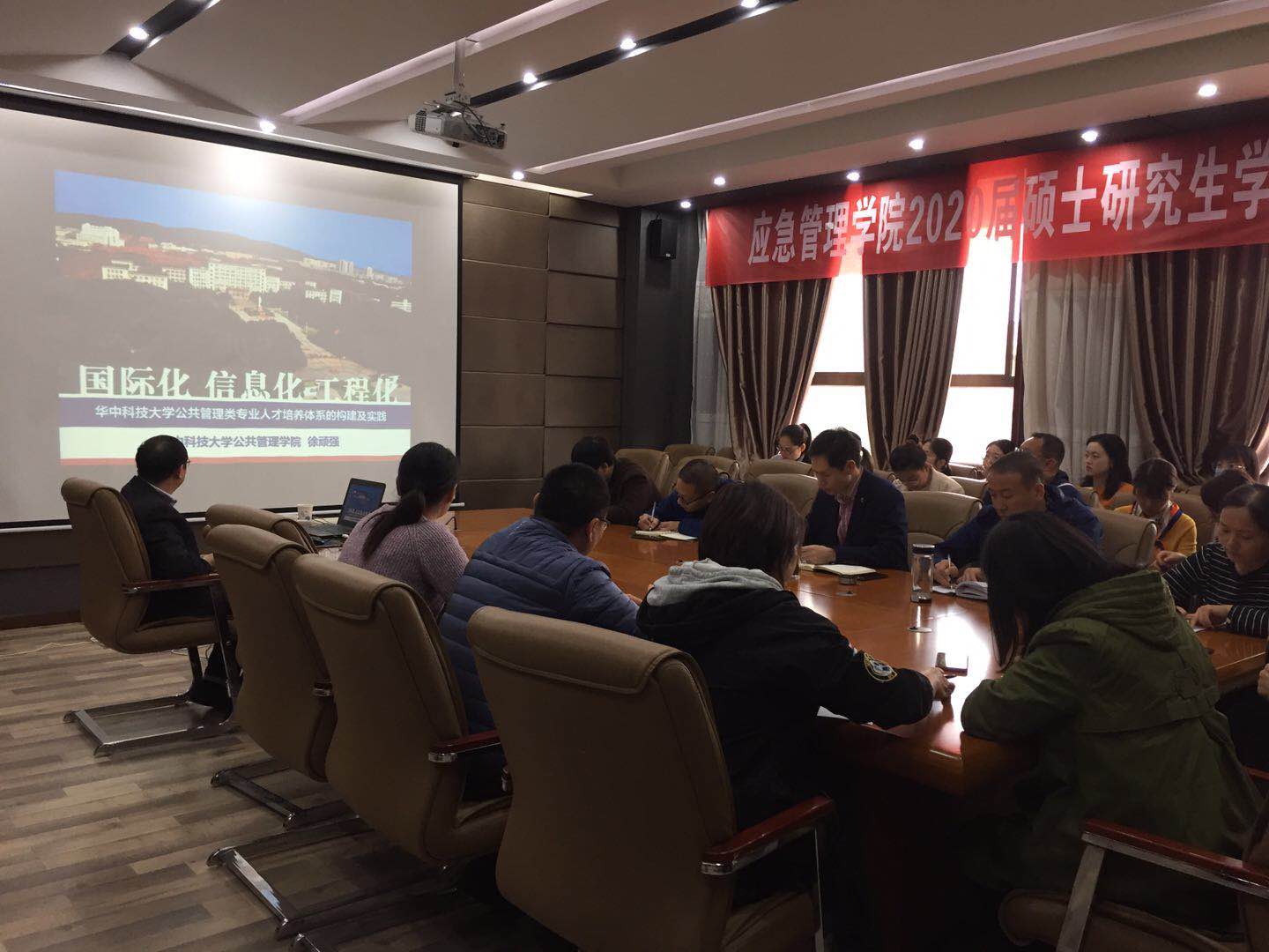 10月12日下午,受应急管理学院邀请,华中科技大学教授徐顽强于文综楼518室作了“国际化、信息化、工程化——华中科技大学公共事业管理专业人才培养体系的构建及实践”专题学术报告,就公共管理类专业人才培养体系的构建及实践领域进行交流。报告会由应急管理学院党委书记陈昊主持,该院全体教师及部分研究生参加了报告会。