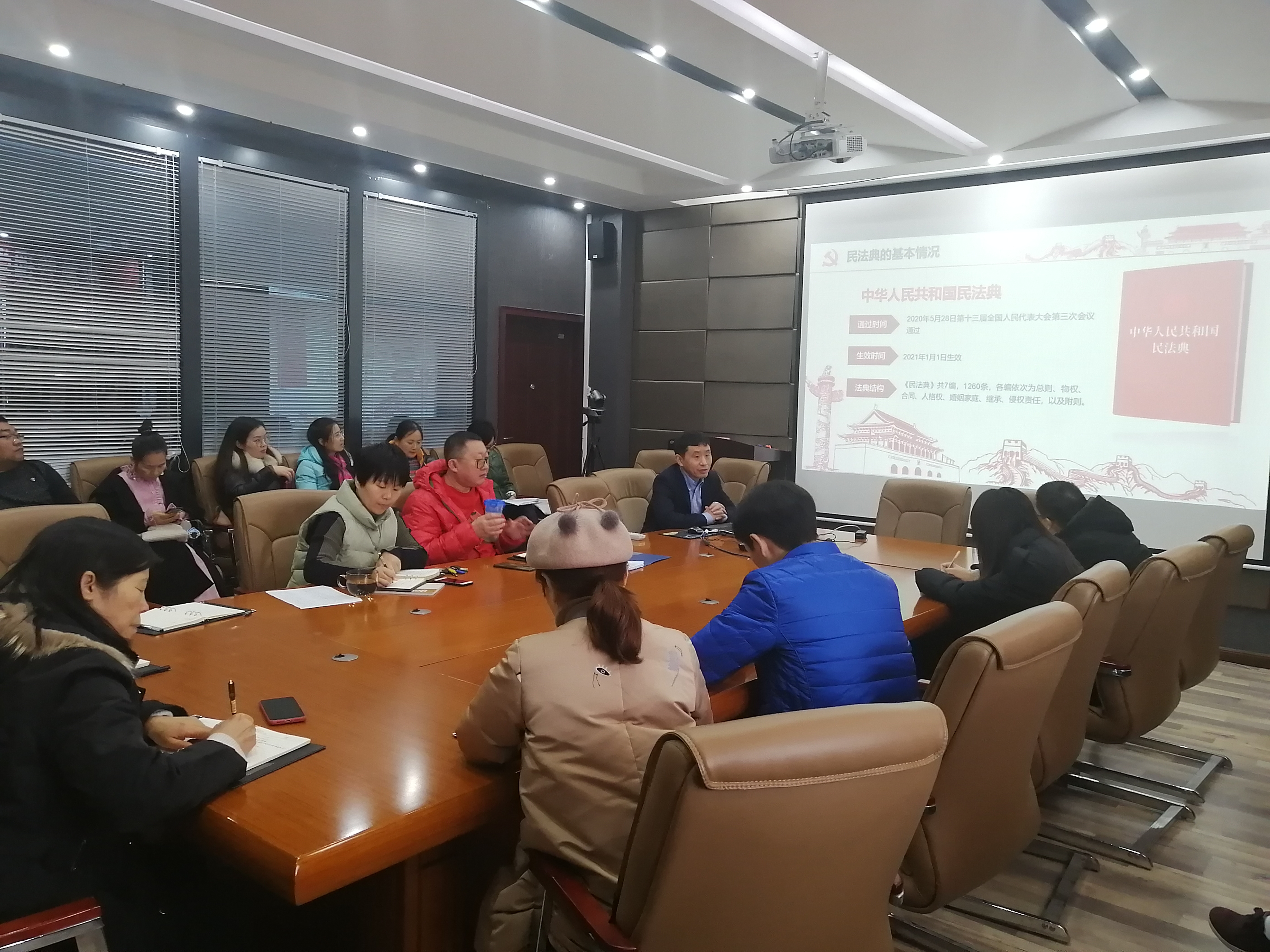 会上,谢珺从民法典的基本情况、民法典的时代特色和制度创新、颁布民法典的重大意义、息息相关的民法典亮点解读四方面向全体教职工重点诠释了民法典新的时代意义。谢珺指出,民法典体现的核心理念是民事权利宣言、平等、自愿、公平、诚信、社会主义核心价值观,民法典的颁布,极大地促进了我国民事立法的体系化,有助于提升我国治理能力和治理体系的现代化。随后,她将第四条细化,从总则编、物权编、合同编、人格权编、婚姻家庭编、继承编、侵权责任编等方面分条阐述,全面讲解民法典的主要内容。最后,谢珺强调,要切实增强学习《民法典》的主动性和自觉性,做到以学促用、以知促行,让法治成为社会共识和基本准则,不断提升知法、守法、用法能力和水平,推动各项工作取得新成效、迈上新台阶。