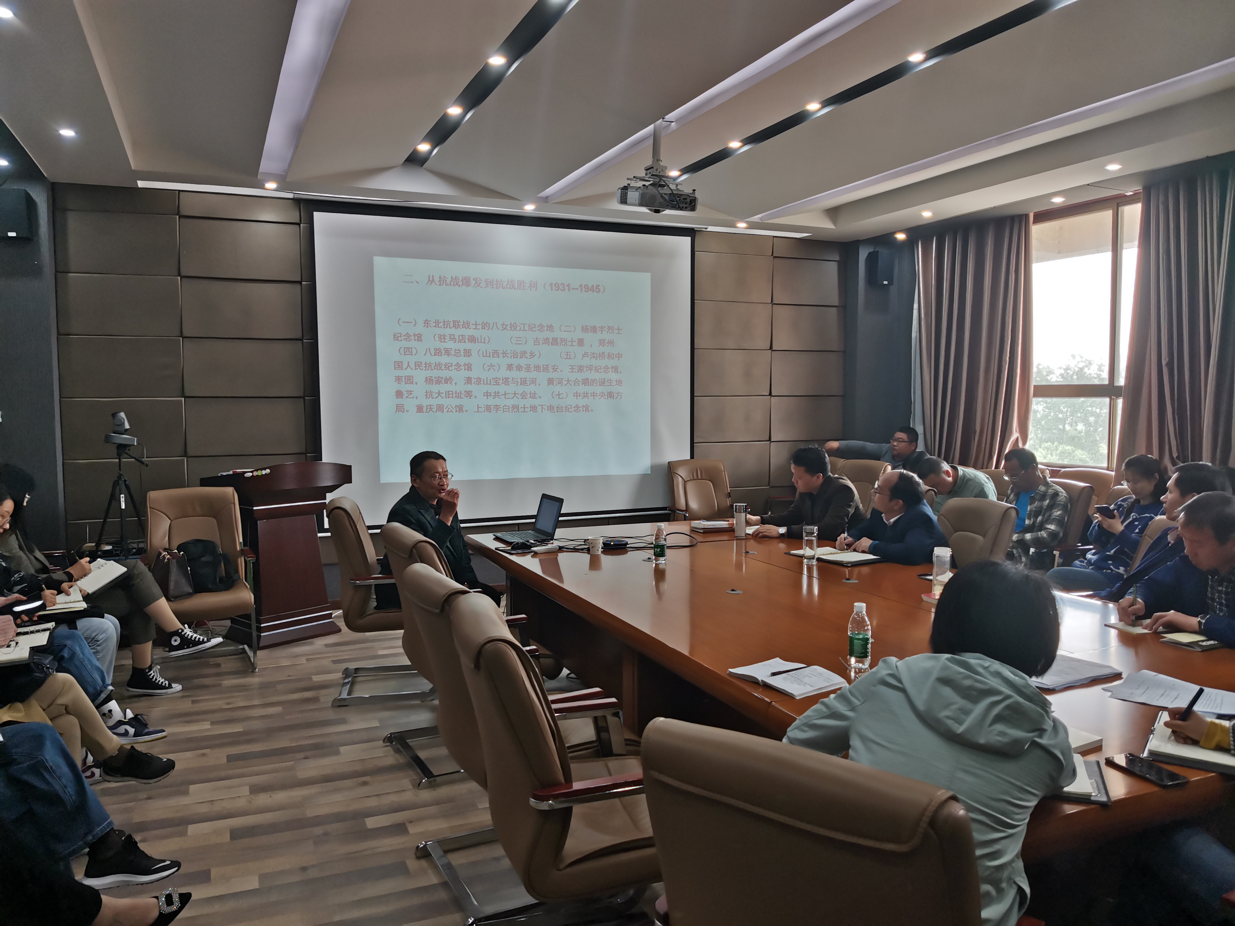 4月25日下午,应急管理学院特聘组织员陈康在文综楼518会议室作“沿着党的红色足迹,缅怀党的辉煌历史——红色革命遗迹巡礼”主题讲座,该院全体教职工聆听了此次讲座。