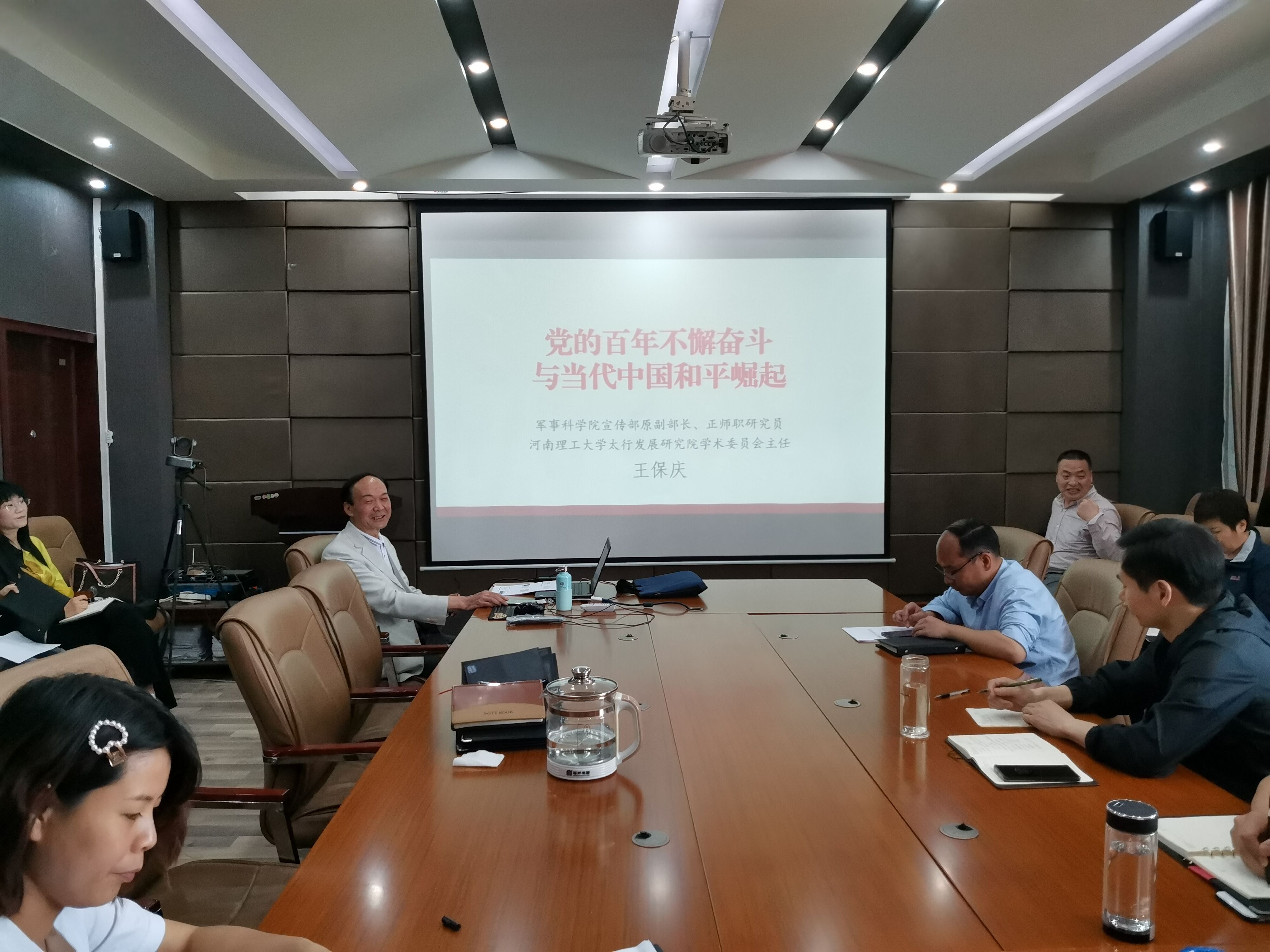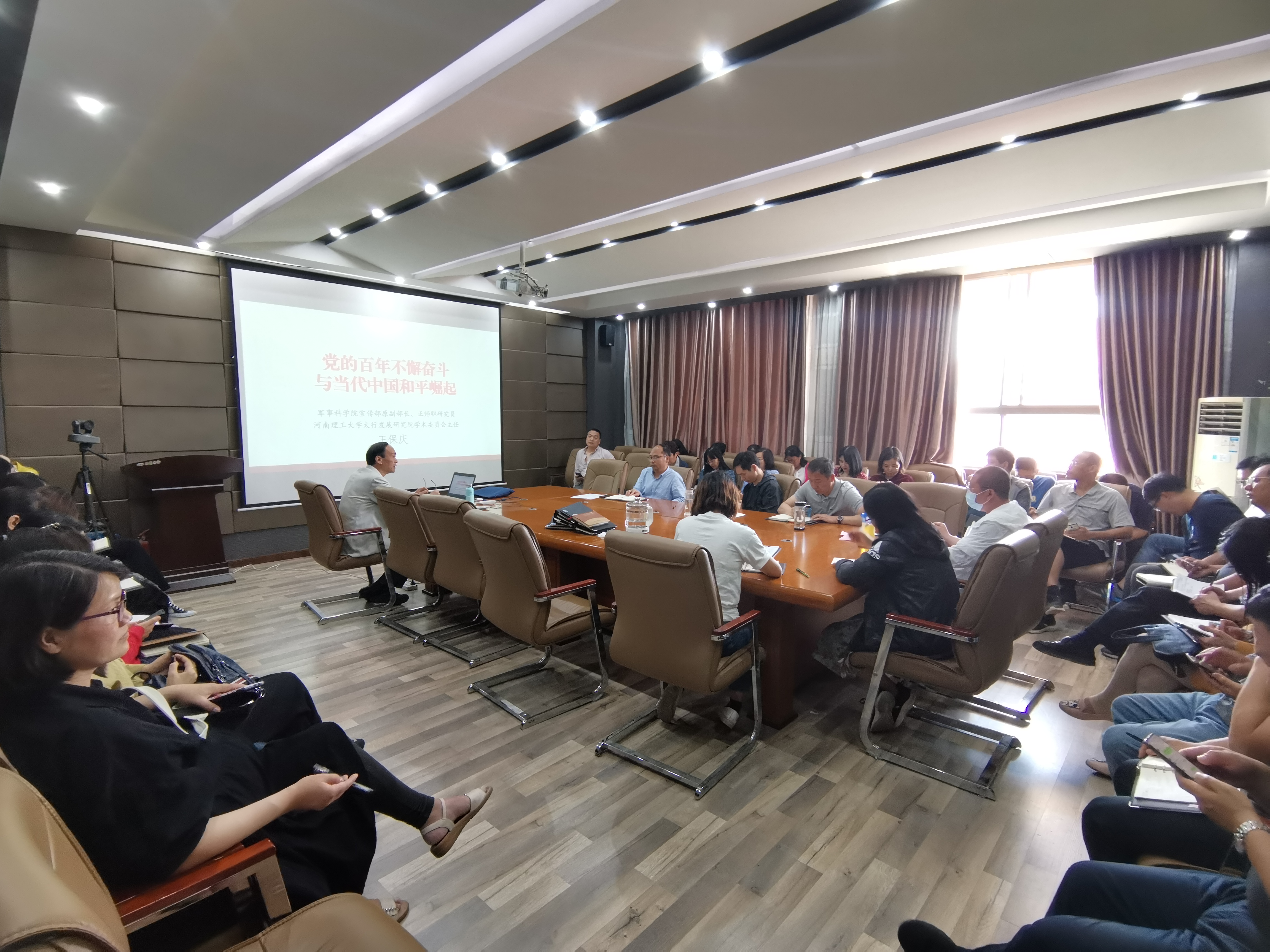 5月18日下午,应急管理学院特邀河南理工大学太行发展研究院学术委员会主任王保庆在文综楼518会议室召开“党的百年不懈奋斗与当代中国和平崛起”主题教育党史学习专题讲座,学院全体教职工聆听了此次讲座,执行院长张小兵主持会议。