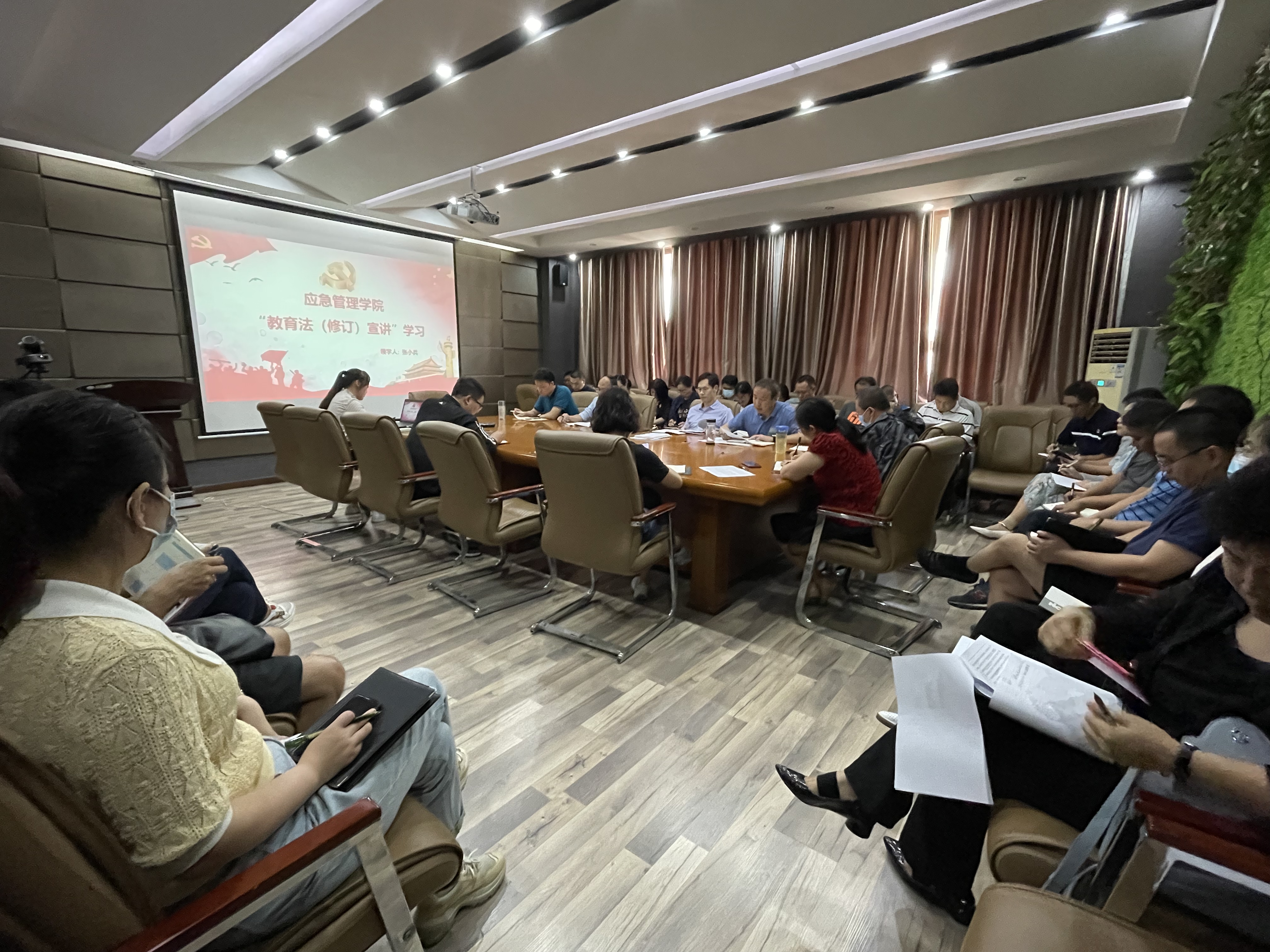 9月7日,应急管理学院在文综楼518会议室召开教育法(修订)专题学习会议。会议由执行院长张小兵主持,党委书记陈昊、党委副书记赵观石、副院长吴晓涛及全体教职工参会。