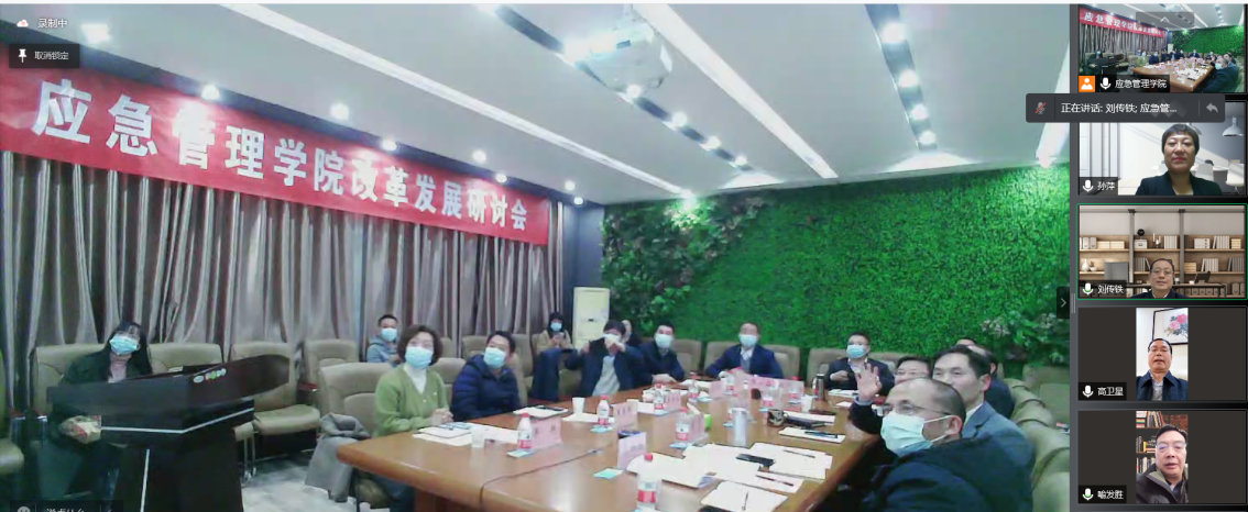 11月9日下午,应急学院采用线上线下相结合方式,在学校文综楼518会议室召开改革发展研讨会。副校长翟耀南出席研讨会并致辞。