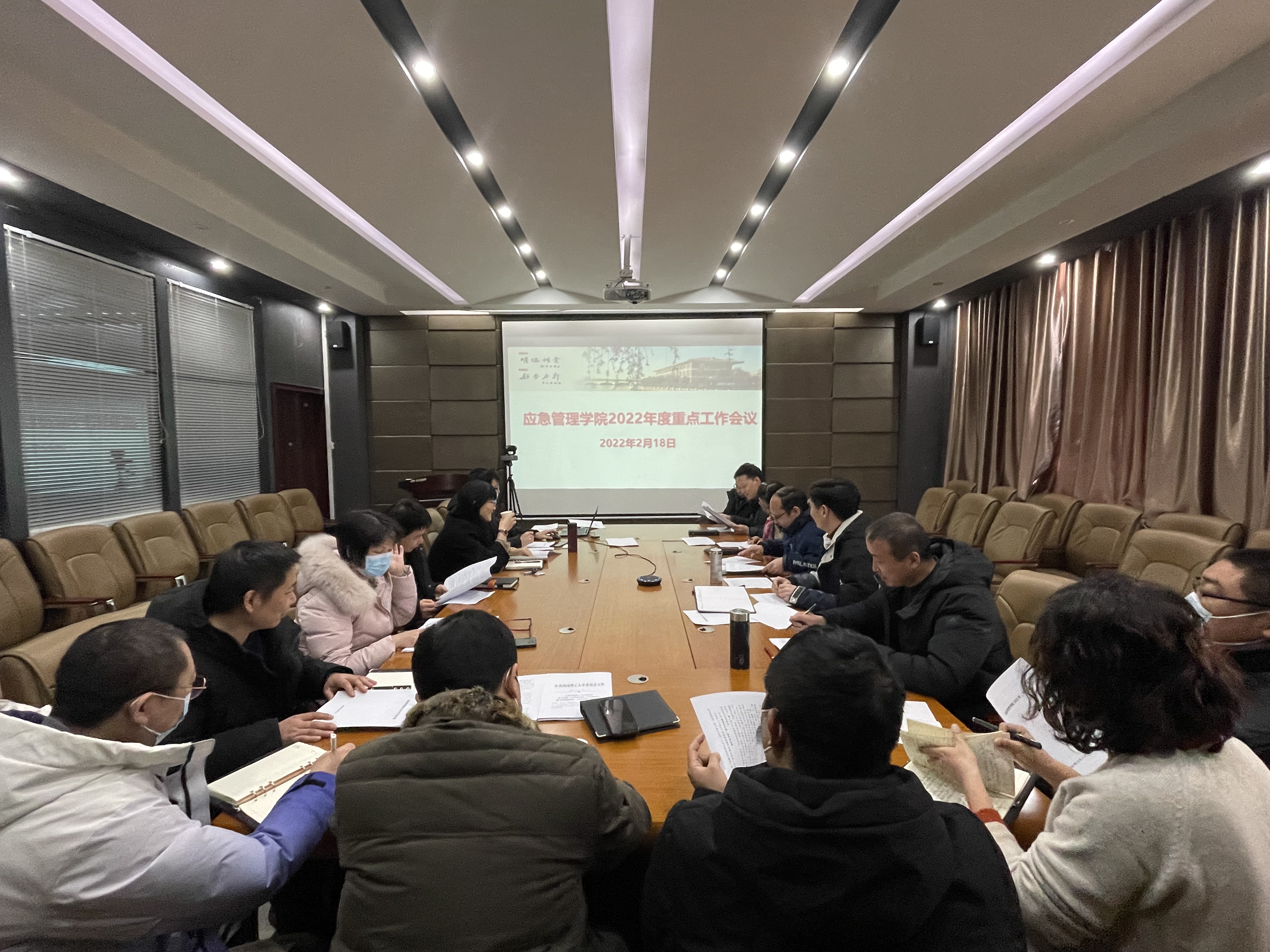 学院执行院长张小兵简要回顾了学院2021年主要工作,宣读了《应急管理学院2022年工作计划》,对2022年度重点工作进行了详细的解读与部署。他指出,2021年学院在党建、教学科研、学科建设、学生工作、研究生培养等方面都取得了不错的成绩,在2022年,按照学校年度目标考核标准,对标对表,继续努力拼搏、锐意进取,进一步提升政治站位、统一思想、开拓创新、团结合作、真抓实干,借助“能力作风建设年”活动,奋力加快建设国内有一定影响、特色鲜明的应急管理学院。随后,分别听取了学院各系主任、支部书记、科室负责人2022年工作难点的汇报。