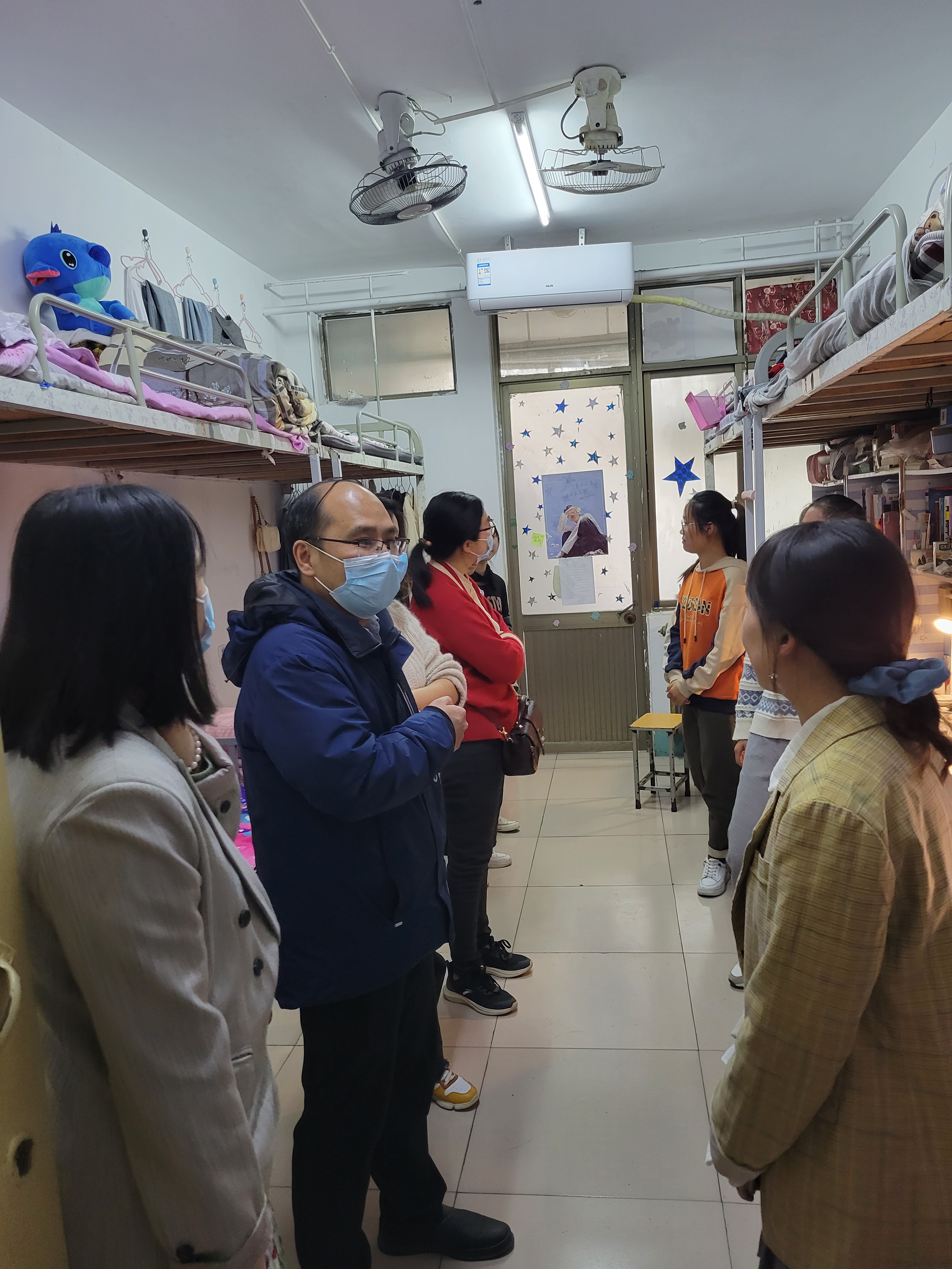 为加强疫情期间学生管理,及时了解和掌握学生的思想动态,关心学生学习状态及生活情况,全面落实学校疫情防控和宿舍安全工作管理要求,4月3日至4月6日,该院党委书记陈昊、执行院长张小兵、副书记赵观石、副院长吴晓涛、全体辅导员、班主任、学业导师深入竹3、松8、兰6宿舍楼共132间学生宿舍进行走访检查。