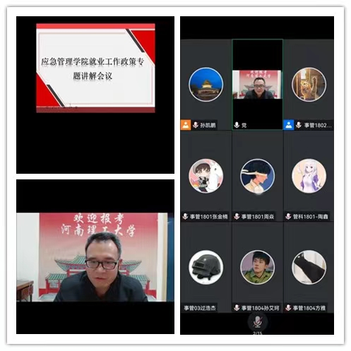 近日,应急管理学院在腾讯会议召开2022届毕业生就业政策讲解专题会议。会议由院党委副书记赵观石主持,校招生就业处就业管理科科长党建军主讲,学院各系主任、毕业班辅导员及班主任、2018级全体未就业学生参会。