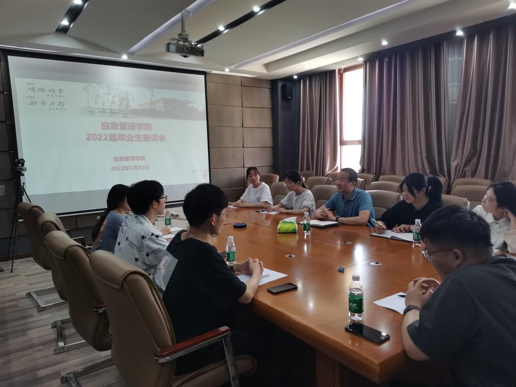 5月30日下午,应急管理学院在文综楼518会议室举行2022届毕业生座谈会,执行院长张小兵同公共事业管理、公共事业管理应急方向、管理科学3个本科专业方向及公共管理学硕毕业生代表亲切座谈。座谈会由学工办和研工办共同组织。