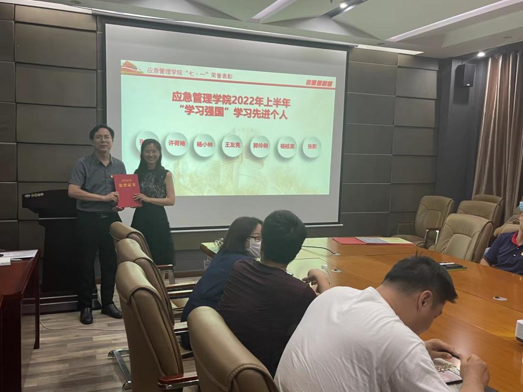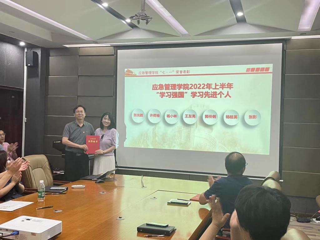 在建党101周年之际,7月1日应急管理学院在文综楼518室举办第一届“学习强国”知识竞赛暨“七·一”表彰大会活动,该院全体教工参加。