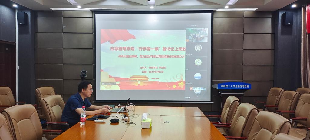 9月9日,应急管理学院在文综楼518室召开2022级研究生入学教育暨书记第一课。院党委书记张光胜主讲,该院全体2022级研究生线上参会。