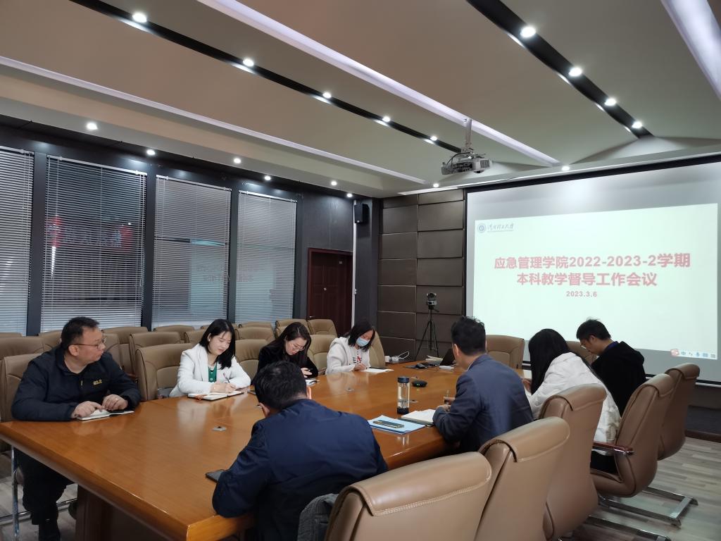 3月6日上午,应急管理学院在文综楼518会议室召开2022-2023-2学期本科教学督导工作会议,副院长吴晓涛、学院教学督导组成员、教科办工作人员参加会议。会议由吴晓涛主持。