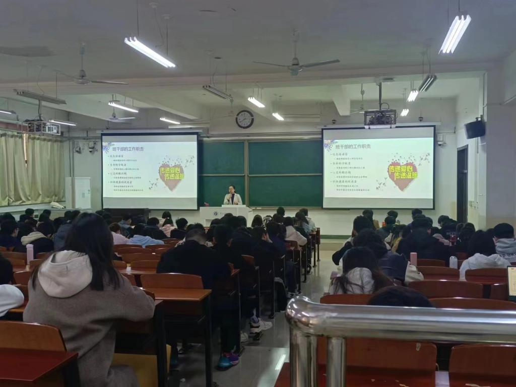 在培训中,潘子彦老师从“学生骨干的职责与要求”“心理危机的识别与处理”和“自我关爱”三个方面,全面阐述了班级学生干部的工作职责与能力要求,深刻剖析了大学生产生心理危机的原因,详细讲述了大学生心理疾病的常见类型与筛查方法,并深入介绍了大学生自我关爱的重要性及方法举措。潘子彦老师通过案例分析、研讨互动、工具测量等形式,旁征博引、举一反三,深入浅出地给大家讲明了班级干部的职责与要求、心理健康的重要性与识别方法、大学生心理危机处置的步骤与办法和大学生维护心理健康、关爱自我的举措,给该院该院班级学生干部(含宿舍长)上了一堂生动、精彩、管用的心理健康课。