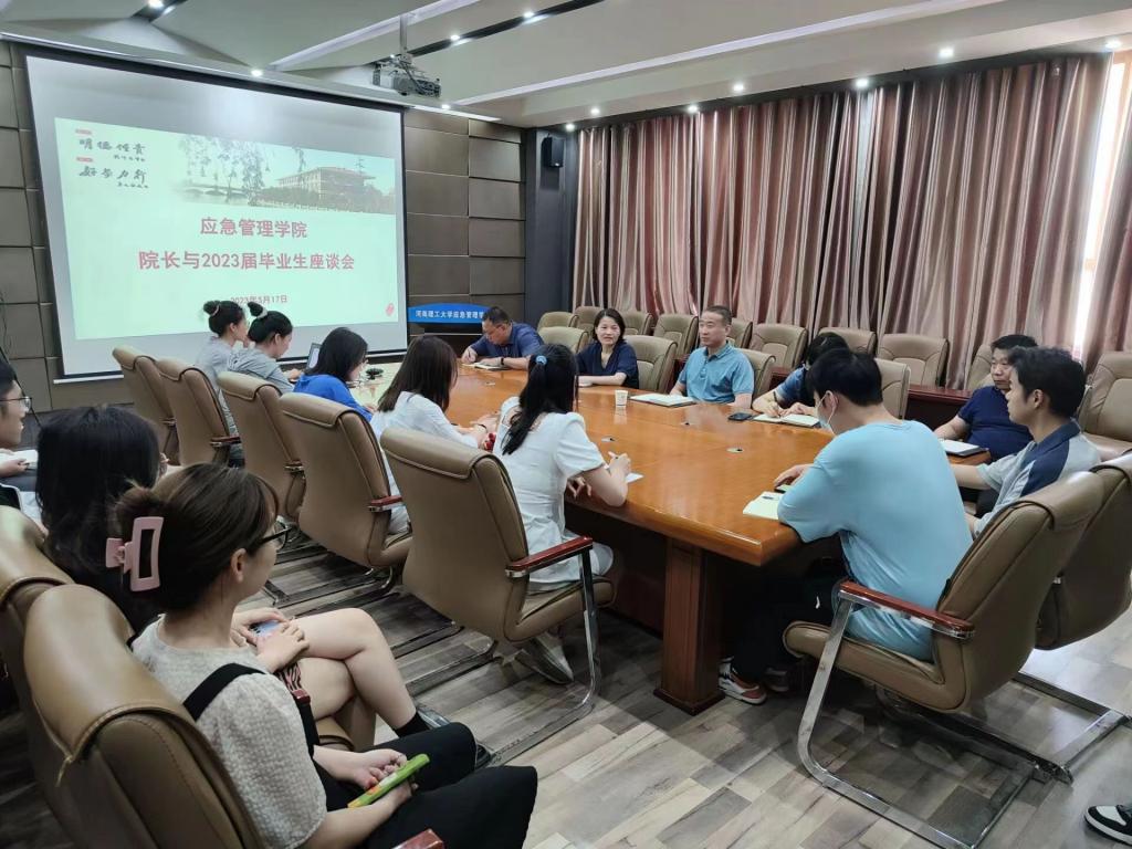 17日上午,应急管理学院在文综楼518会议室召开院长与学生座谈会,该院执行院长张小兵与2023届本科毕业生代表进行亲切交流,学院事管系主任孔娜娜、管科支部书记程书波、应急系教师代表郭明参加了本次座谈会。会议由学院团委书记康件丽主持。