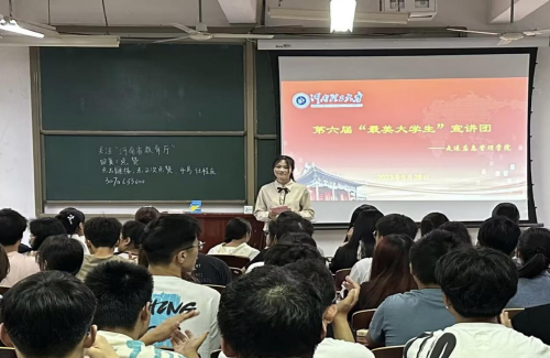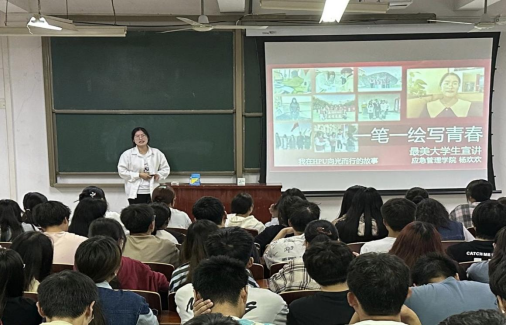 为提高学生的素质,进一步发挥榜样的作用和力量,激励青年大学生奋楫拼搏,砥砺前行,5月28日晚,学校第六届“最美大学生”宣讲团成员走进应急管理学院,在文综楼509室进行专题宣讲,学生处、应急学院相关老师及该院百余名学生聆听了此次专题宣讲会。