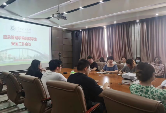 为进一步加强暑假期间校园安全工作,保障留校学生暑假期间的生命安全和身心健康,7月6日,应急管理学院在文综楼518室开展暑假学生安全工作会议,会议由我院党委副书记任华主持,院学工办、研究生办科室负责人、学院全体留校学生宿舍安全员参加此次会议。
