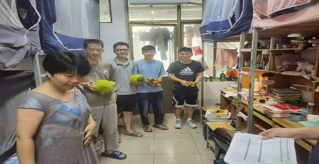 在此次活动中,老师们走访留校学生宿舍,耐心倾听学生们的心声,了解他们在留校期间面临的困难和需求,为暑期留校考研学子加油鼓劲。期间,任华叮嘱留校学生遵守学校相关安全规定,增强安全防范意识,鼓励他们积极面对困难,调整好心态,并分享了一些学习经验和生活技巧,帮助他们更好地适应留校生活。最后,老师们还为学生们送去关怀物品,如降暑西瓜、饮料等,帮助他们过一个愉快而充实的暑假。同学们对老师们的慰问活动表示感激,大家纷纷表示,老师们的关怀让他们感到温暖和鼓舞,同时也增强了他们对学习的动力和信心,他们将以更加积极的态度投入到暑期学习和备考中,为自己的成长和发展努力奋斗。