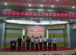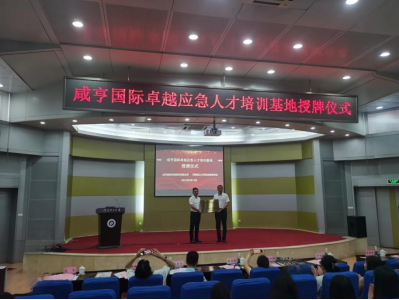 执行院长张小兵与王江洪总监进行咸亨国际卓越应急人才培训基地授牌仪式