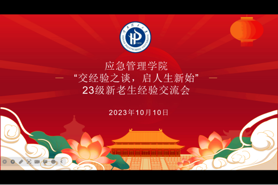 为了帮助2023级新生尽快转变角色,更好地融入校园文化生活,10月10日,应急管理学院团委在三教3104教室组织开展以“交经验之谈,启人生新始”为主题的学长引航经验交流会。本次会议邀请了该院20级、21级以及22级优秀学生代表杨欢欢、胡雅然、陈玉倩、张伦、孟佳瑶分享经验,由韩梦阳主持,23级全体同学参与会议。