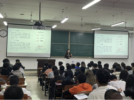 首先,20级学生代表杨欢欢从立德、立学、立能、立身四个方面向该院新生分享经验,并详细讲述了自己参加各类竞赛的经历,激发了同学们对科研竞赛的兴趣;胡雅然从保研知识、能力提升、学习经验、提升绩点技巧四个方面进行介绍,并向同学们附上了一句赠语:“人生是旷野,不是轨道。”随后,21级学生代表陈玉倩从“学”“职”“践”“行”四个方面分享经验,她给新生的寄语是:“为者常成,行者常至;行而不辍,未来可期。”最后,22级学生代表张伦分享在大学生活中总结的经验教训,并建议同学们可以多参加各种比赛,拓宽视野;孟佳瑶着重为大家分享了如何利用身边的资源,提升自我。在互动环节,同学们对存在疑惑的地方提出问题,学长学姐们及时反馈解答,为学弟学妹们提供了宝贵的经验。活动接近尾声时,学长学姐们也留下了联系方式,方便之后进行指导交流。