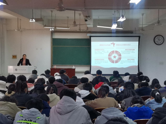 为了激发学生爱国热情,培养学生的家国情怀和社会责任感,应急管理学院党委书记谢玉芬以“擎爱国火炬,做时代新人”为主题在文综楼510教室为学院2023级全体学生上思政课。