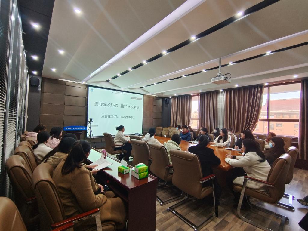 为了加强学院的学风建设,提高人才培养质量,应急管理学院于11月16日下午举办了一场主题为“遵守学术规范,恪守学术道德”的学术讲座。该讲座以线上线下相结合的方式进行,吸引了该院2023年全体研究生的关注,共计80余人参与了本次报告。