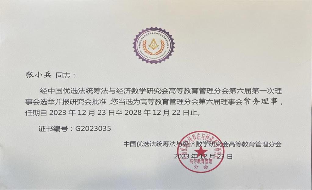 在中国双法研究会高等教育管理分会第六届理事会聘任仪式中,东北财经大学受聘为第六届理事长,与会嘉宾房勇教授、孙会君教授、李大庆教授、罗俊教授、吕孝礼教授、容志教授和佘硕教授被聘为副理事长,我院张小兵教授受聘常务理事。