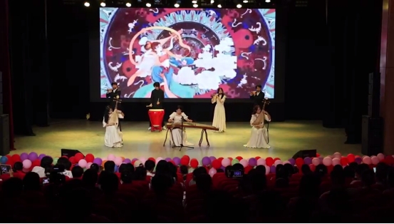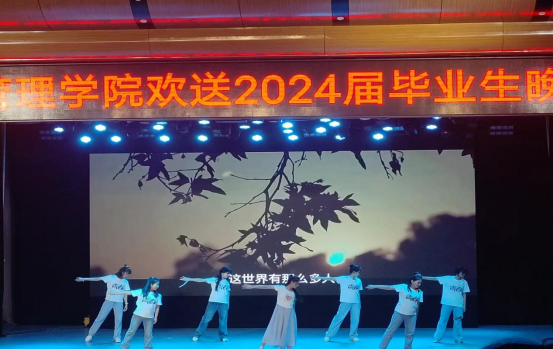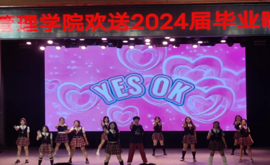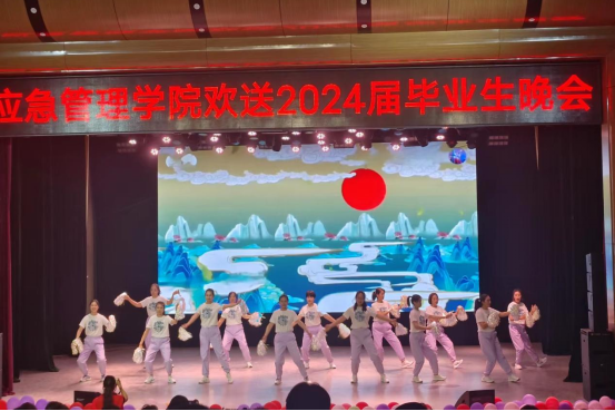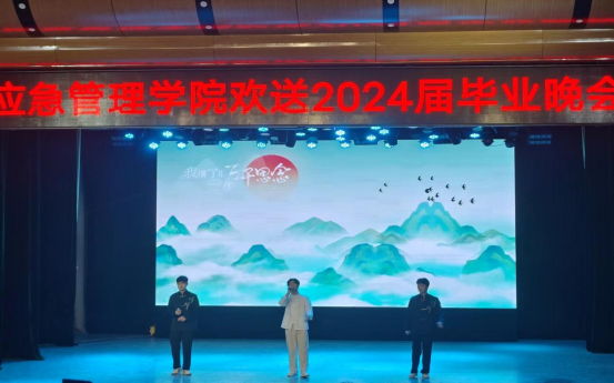 晚会伊始,大屏幕播放学院领导老师和优秀校友代表对毕业生们的祝福视频,他们深情回顾了同学们在校园里的成长历程,表达了对毕业生未来的美好祝愿,并鼓励大家在未来的道路上,继续保持青春的激情和拼搏的精神。随后,晚会以一支充满活力的开场舞《Yes Ok》拉开序幕,瞬间点燃了现场的热情。舞台上,灯光璀璨,节目精彩纷呈。同学们带来的舞蹈、小品、歌曲等节目,无不迸发出青春的活力与激情。其中由研究生毕业生代表表演的小品《反诈银行》更是凭借新颖有趣的角度反应当下诈骗现状并为同学们做了一次深刻的防诈骗安全教育,弘扬中国传统文化的民乐演奏让师生深切感受到中华文化的魅力与精髓,志愿精神的手势舞蹈引领大家要保持一个公益之心奉献社会,应急学院的女教师们带来的舞蹈《健康到到令》也为毕业生送来了健康与快乐的祝福,获得观众阵阵喝彩。随着晚会的深入,现场气氛愈发热烈。观众们闪光灯照亮整个会场,时而为精彩的节目欢呼鼓掌,时而为感人的致辞泪眼婆娑。在这个特殊的夜晚,每个人都沉浸在青春的回忆与感动之中。最后,晚会在学院20级班委和辅导员代表共同演唱的歌曲《再见》中落下帷幕。这首歌曲不仅是对过去时光的告别,更是对未来生活的美好期许。