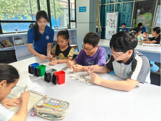 下午三时,团队成员抵达焦作市图书馆,开启了一场为孩子们精心准备的宣讲之旅,这不仅是一次知识的传递,更是一次心灵的交融与成长。讲解活动开始前,团队全体成员热情地宣传动员馆内的孩子们。活动伊始,团队宣讲代表依次介绍了“心肺复苏”、“海姆利克急救法”、“井冈山精神”、“长征精神”等红色革命精神、环保垃圾分类方法。在“心肺复苏”、“海姆利克急救法”的现场演示环节中,宣讲代表实际操作了在遇到突发心脏骤停、气道异物梗阻等事故时的应对过程与细节,孩子们跃跃欲试,认真模仿,逐渐领悟到了生命的脆弱与宝贵,也明白了救援知识的重要性。紧接着,通过生动形象的PPT展示、引人入胜的视频播放,红色事迹化成一个个具体可感的场景,为孩子们描绘了一个个在历史长河中熠熠生辉,感人至深的红色故事。宣讲员以“井冈山精神”“长征精神”红色革命精神为代表,分别介绍了其科学内涵,现实意义。通过宣讲员的讲述,孩子们的心中种下了一颗颗爱国的种子,他们聆听着、思考着,仿佛穿越时空,与那些伟大的灵魂相遇,感受着那份为了国家和人民无私奉献的热血情怀。