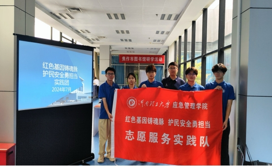 为深入传承红色精神,弘扬党的优良作风,从红色基因中汲取强大精神力量,传播安全和应急自救知识,并提高孩子们的安全意识以及在紧急情况下的自救互救能力。2024年7月14日,河南理工大学应急管理学院“红色基因铸魂脉,护民安全勇担当”实践团前往焦作市图书馆开展宣讲活动。