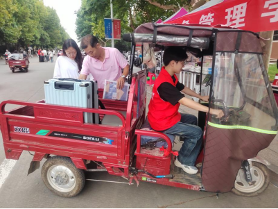 早上六点,我院的志愿者们就已准备就绪,各司其职,热情满满地迎接新一届的学子们。在校门口,志愿者们身穿蓝色马甲,手举标牌,骑着电动三轮车,组成了迎新的第一道风景线。他们热情地为新生提供引导,帮助他们顺利找到报到地点,同时承担起行李搬运等琐事,使得新生可以轻松地开启他们的大学生活。在春秋大道的迎新注册点,提前布置妥当的志愿者们已将新生录取名单、报到流程等资料一一准备就绪。每位志愿者都耐心地为新生解答疑问,确保他们能够理解报到的每一步流程,并亲自协助新生填写相关表格,完成报到注册。无论是解答对校园环境的好奇还是指导如何加入各类社团,志愿者们都表现出了极大的耐心与热情,为新生们带来了温暖与帮助。总之,在老师与志愿者的分工合作、协调配合下,新学期的迎新活动圆满完成。