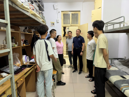 在学生宿舍,院领导们对同学们的到来表示热烈的欢迎,并同新生进行了亲切的交流,关切询问新生入学报到过程、到校后的学习生活安排及入学适应状态,鼓励同学们尽快转变角色,适应大学的学习生活节奏。院领导勉励同学们要养成健康文明、积极向上的生活习惯,保持阳光开朗、乐于表达的良好心态,树立明确的学习目标,充分利用课余时间开展各种有益身心的科研、文体活动,度过丰富、充实、美好的大学时光。同时,老师们温馨提醒新同学要严格遵守宿舍管理规定和学校、学院的制度要求,注意宿舍卫生,维护宿舍团结,提高安全意识,注意防火、防盗、防诈骗和宿舍用电安全,共同营造和谐温馨的宿舍氛围。