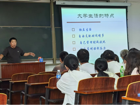 会议由学院党委副书记任华同志主持。会上,任书记首先介绍了此次参会的各位领导和老师,并对同学们的到来表示热烈欢迎和真挚祝福,希望大家尽快熟悉适应新大学环境,做好规划,在青春的赛道上奋力奔跑。