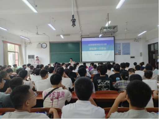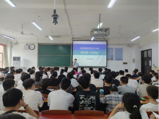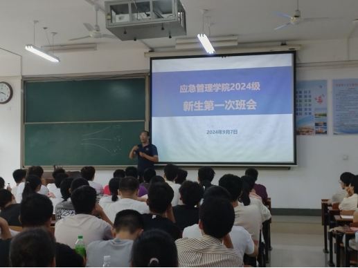 开启新篇章,踏上新征程。为推进2024级新生工作有序开展,帮助新生尽快适应大学生活,提升班级凝聚力和向心力,促进学风建设,应急管理学院于9月7日在三教3203教室召开2024级本科新生第一次班会。学院党委副书记任华、辅导员杨笑冰、新生班主任王友亮、吴孟龙以及全体2024级新生参加会议。