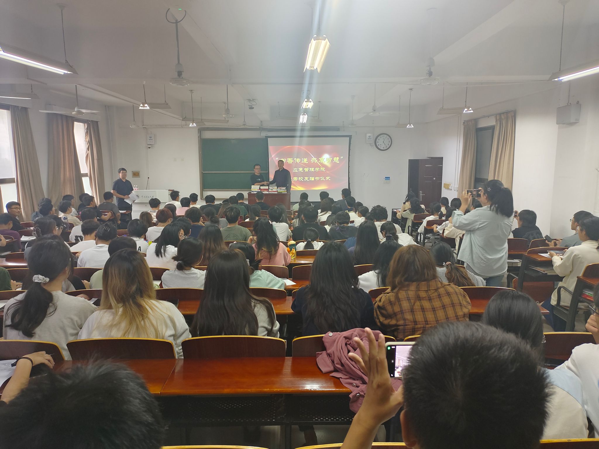 近日,我院在文综楼510教室举办了应急管理学院优秀校友赠书仪式。特邀我院杰出校友张晓刚出席活动,仪式由我院团委书记孙凯鹏主持,执行院长张小兵与优秀校友合影留念,全院各年级150多名学生共同参与活动。