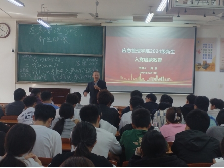青春向党,筑梦启程。为深化大学生理想信念教育,提高2024级新生对党的认识,引导青年学子不忘初心、砥砺奋进,积极向党组织靠拢,10月11日上午,应急管理学院诚邀校档案馆原副馆长、校理论宣讲团专家、学院关工委常务副主任陈康教授于三教3308教室开展2024级新生入党启蒙与理想信念教育。应急学院2024级全体新生120余人参加会议。