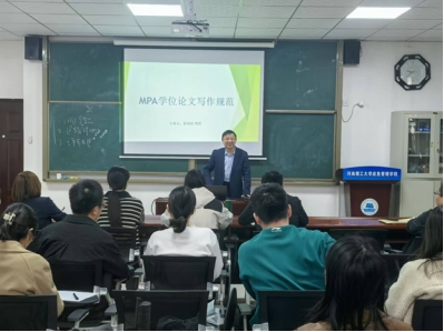 报告伊始,徐顽强用“寻找选的路径、把握写的精髓、发掘论的潜能、实现文的价值”24字高度概括了学位论文写作方法、路径和目的,随后他围绕MPA学位论文的特点,从选题策略、要素解读、资料搜集与研究方法剖析等三个方面,重点论述了学位论文如何做到选题合理、结构完整和方法得当,同时结合案例分析了MPA学位论文写作过程中存在的问题,并就存在的问题提出了解决的办法举措。