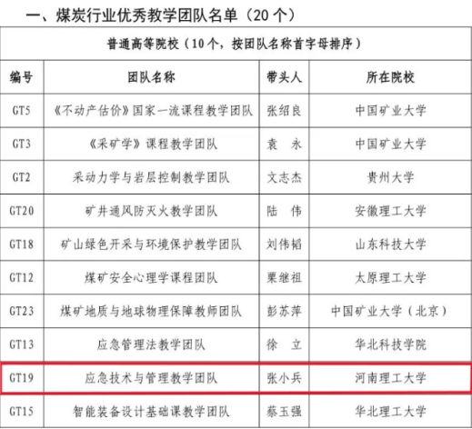 中国煤炭教育协会组织的2024年煤炭行业教学名师和优秀教学团队现场答辩于2024年10月12日-13日在北京召开,我院执行院长张小兵教授主持申报的“应急技术与管理教学团队”经过校内推荐、专家函评及现场汇报,成功获批煤炭行业优秀团队称号,这是我院首次获得此项荣誉。