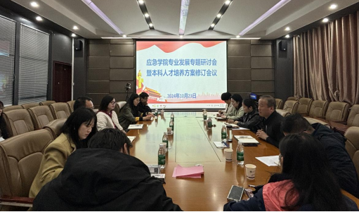 2024年10月23日下午,应急管理学院专业建设发展优化专题会——暨新版人才培养方案的优化与修订专题会议在文综楼518会议室举行。教务处副处长吴鋆萍同志出席本次会议,应急学院党委书记谢玉芬、执行院长张小兵、党委副书记任华、教学副院长揣小明、各专业负责人、教科办人员、学工办老师、一线教师代表和部分优秀学生代表参加了本次会议,专题会由教学副院长揣小明副教授主持。