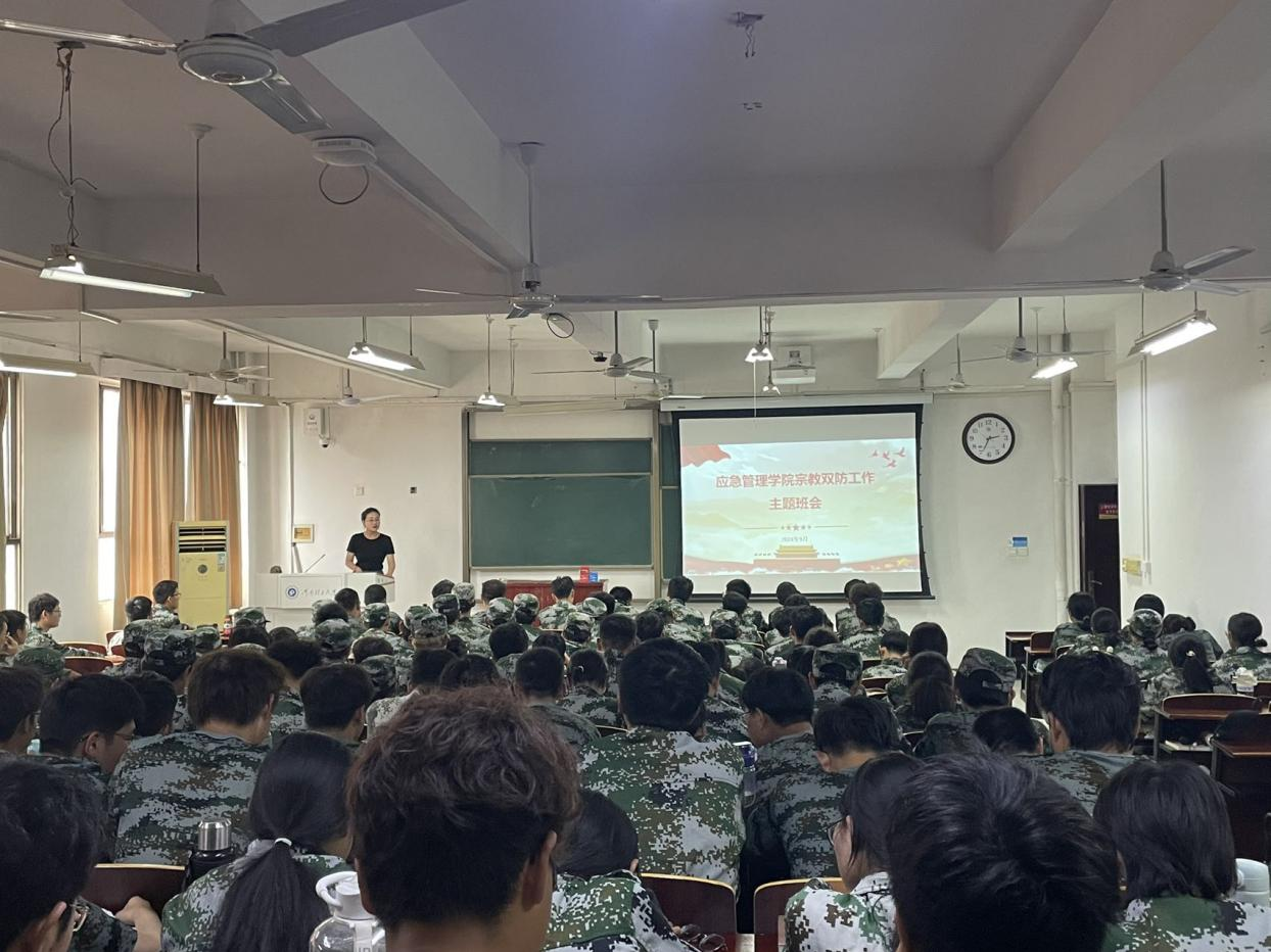 为深入贯彻落实习近平总书记关于宗教工作的重要论述和会议精神,引导大学生崇尚科学,树立正确的宗教观,九月下旬,应急管理学院各年级组织召开“双防”宗教工作专题会议,会议由各辅导员老师担任主讲。