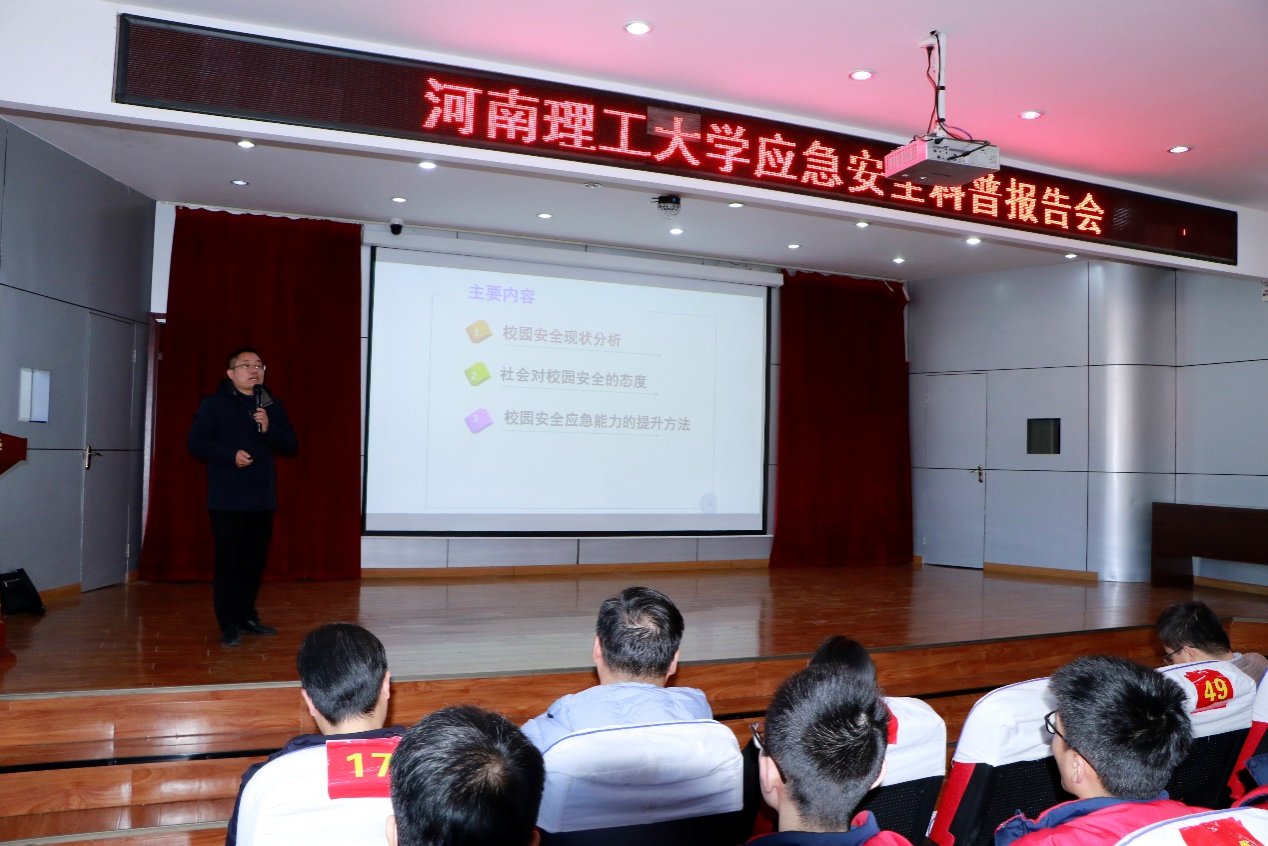 揭牌仪式结束后,揣小明为长垣一中的部分师生做了《关于校园安全应急能力提升方法》的专题讲座。揣小明针对校园安全现状分析、社会对校园安全的态度及校园安全应急能力的提升方法三方面进行了详细讲解。他重点从增强安全意识、排查风险隐患、提升应急能力等多个角度介绍了校园安全应急能力的提升方法,为师生们提供了实用的建议和指导。整场讲座内容详实、条理清晰,为长垣一中的师生们上了一堂生动的安全教育课。