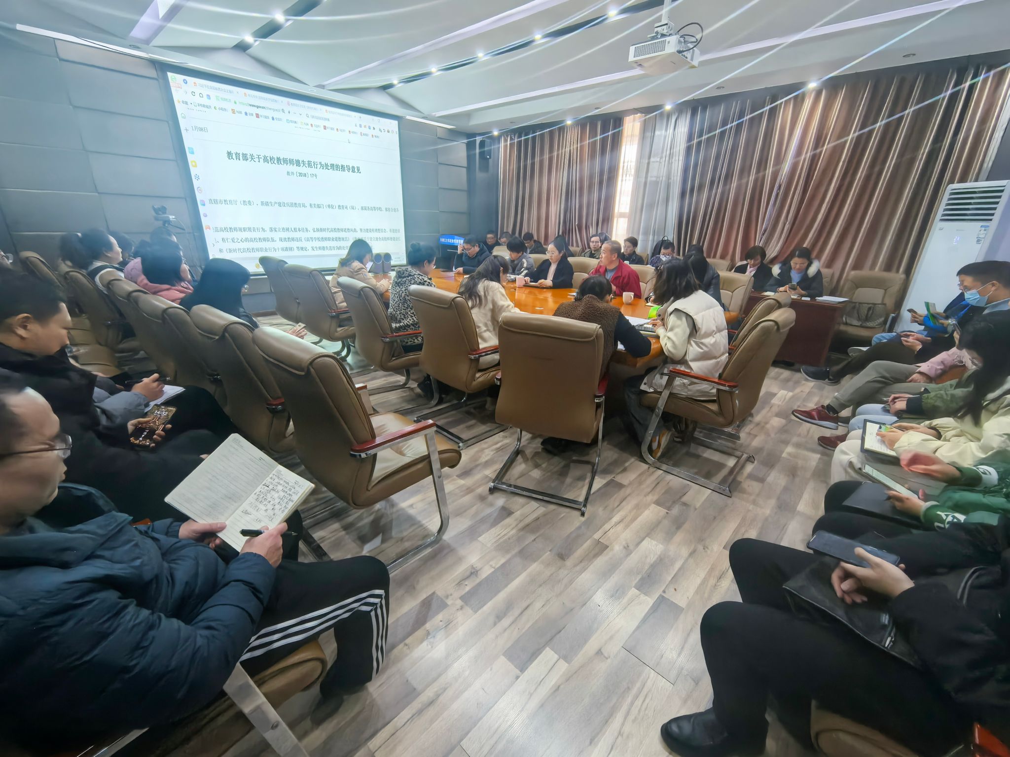 为全面落实党中央关于师德师风建设的重大决策部署,健全师德师风建设长效机制,推动教师思想政治、师德师风、育人能力一体化跃升,12月23日,应急管理学院在文综楼518会议室组织召开师德师风建设警示教育专题会议。学院领导班子成员与全体教职工参加学习,学院执行院长张小兵主持会议。