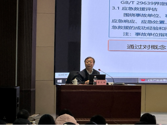 报告会上,雷长群围绕《生产安全事故应急救援评估规范》展开,详细阐述了该规范的出台背景、主要特点、重要意义以及基本内容,深入解读了规范的编制历程和基本要求,全面剖析了评估依据、原则、方法、程序、要素等内容;同时,结合近年来发生的重特大事故案例,如安阳“11·21”火灾事故、阿拉善露天煤矿“2·22”坍塌事故、银川烧烤店“6·21”燃气爆炸事故等案例,梳理了应急救援评估工作流程。针对《生产安全事故应急救援评估规范》的落实,他指出从宣贯培训、履职尽责、监督检查、法制保障等四个方面综合施策,确保规范的有效执行。