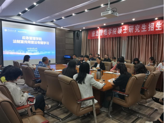2025年4月15日,为深入学习贯彻习近平法治思想,落实教育系统“八五”普法规划,学院在文综楼518会议室召开法治教育宣传周主题活动,全体教职工参会。